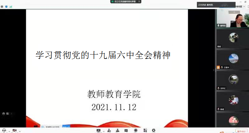 11月12日,学院召开政治理论学习腾讯视频会议,学习贯彻党的十九届六中全会精神,学院全体教职工参加,会议由党委书记蒯秀丽主持。