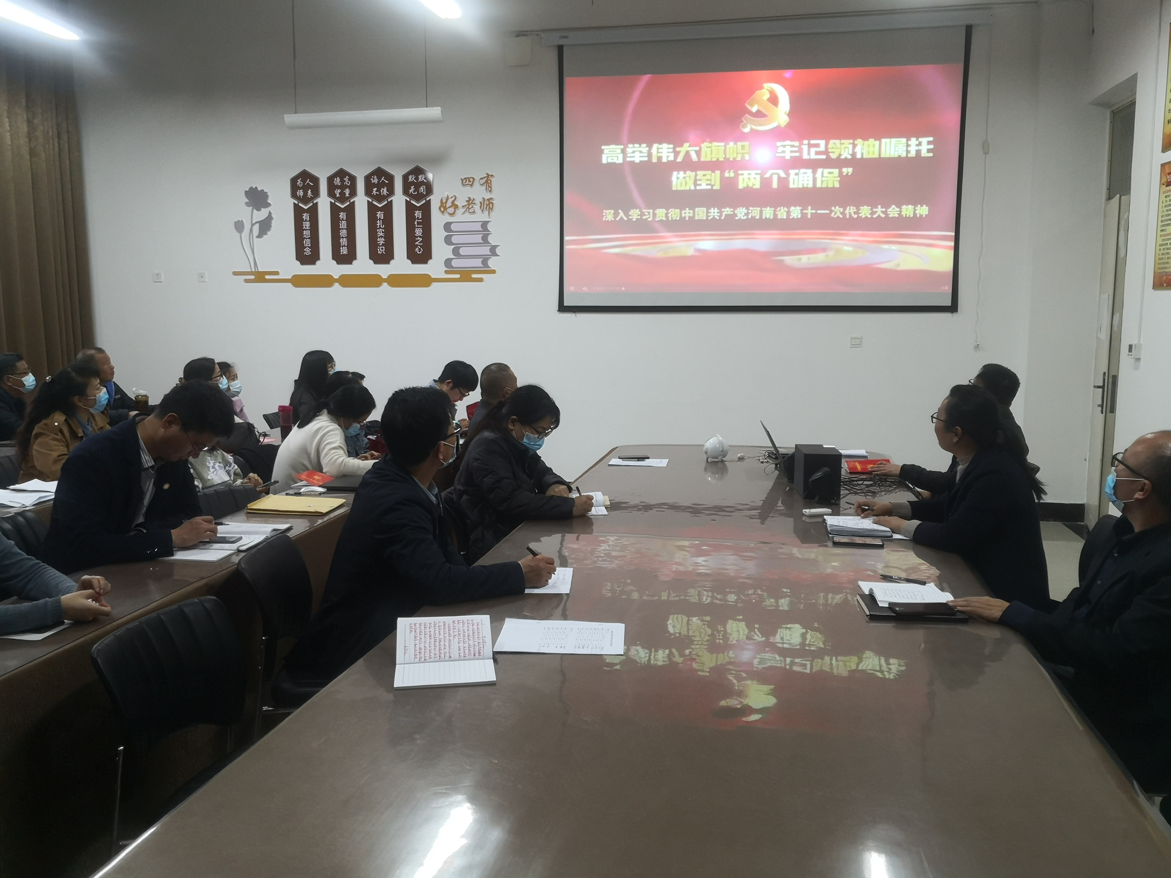 11月19日,学院在汉梁楼203会议室召开深入学习贯彻落实中国共产党河南省第十一次代表大会精神专题学习会议,观看了省第十一次党代会精神宣讲视频《高举伟大旗帜,牢记领袖嘱托,做到“两个确保”》。全体教职工参加,会议由党委书记蒯秀丽主持。