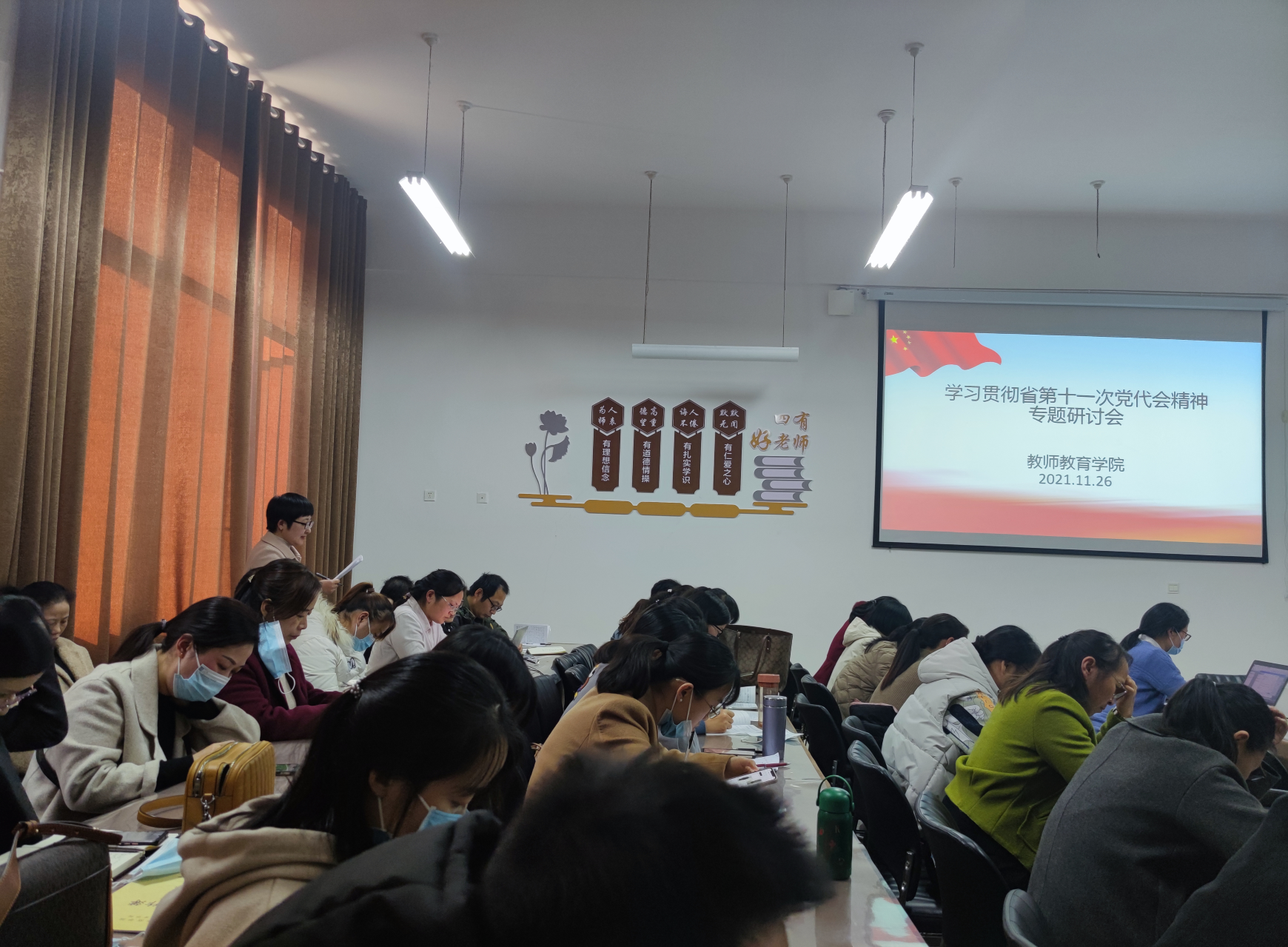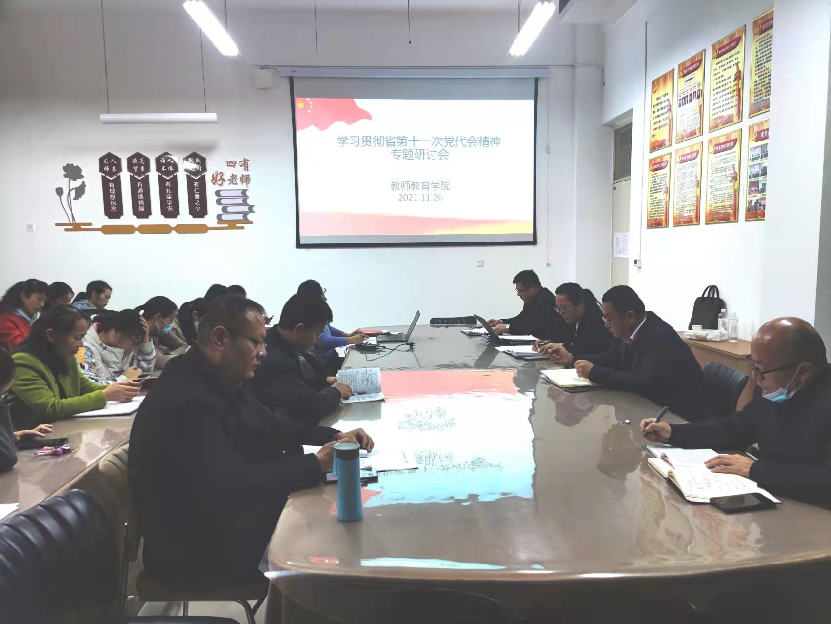 11月26日,学院召开省第十一次党代会精神专题研讨会,全体教职工参加会议。