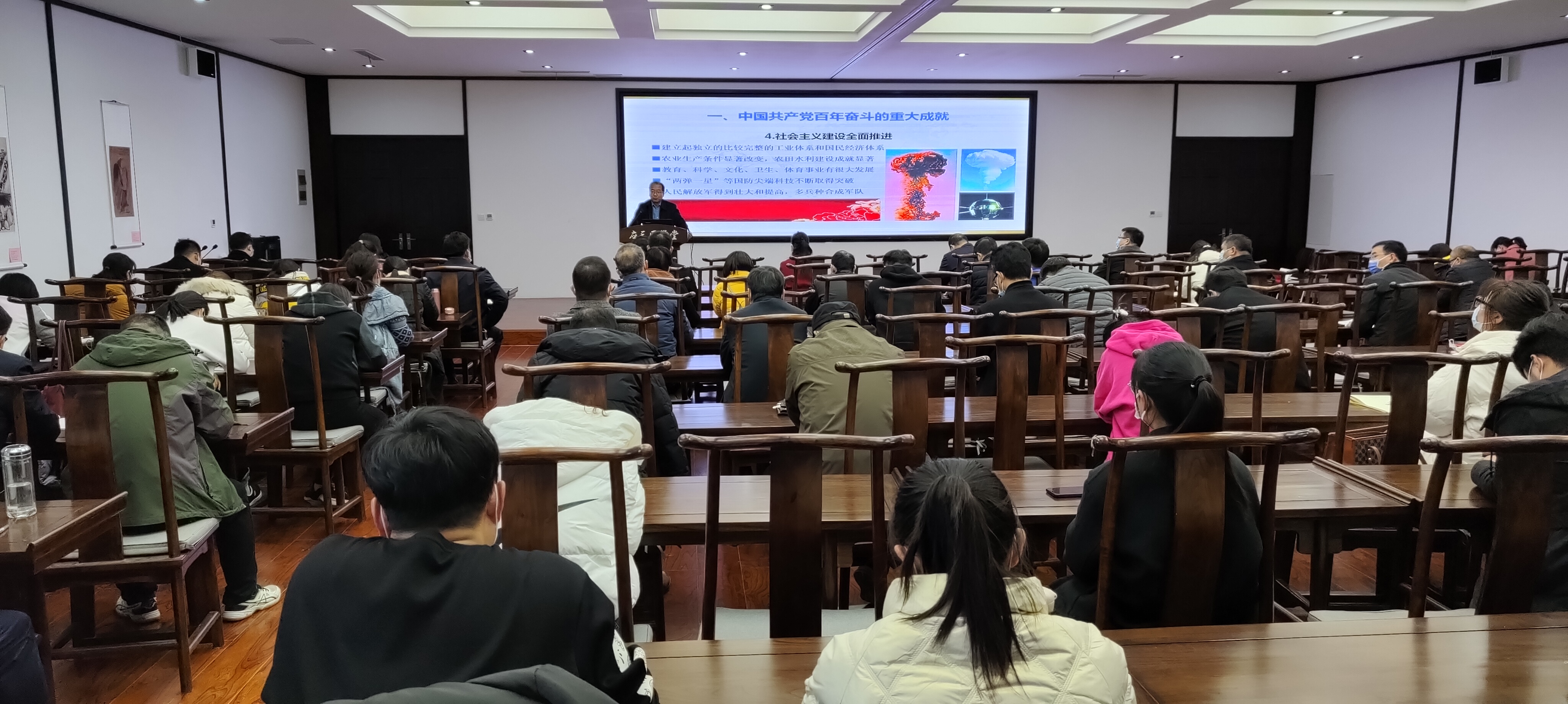 通过这次党课,大家纷纷表示深刻领悟了党的百年奋斗重大成就和历史经验,一定从中汲取奋进新时代新征程的智慧力量,进一步增强“四个意识”,坚定“四个自信”,做到“两个维护”,坚持初心使命,践行立德树人的根本任务,牢记“为党育人 为国育才”使命。