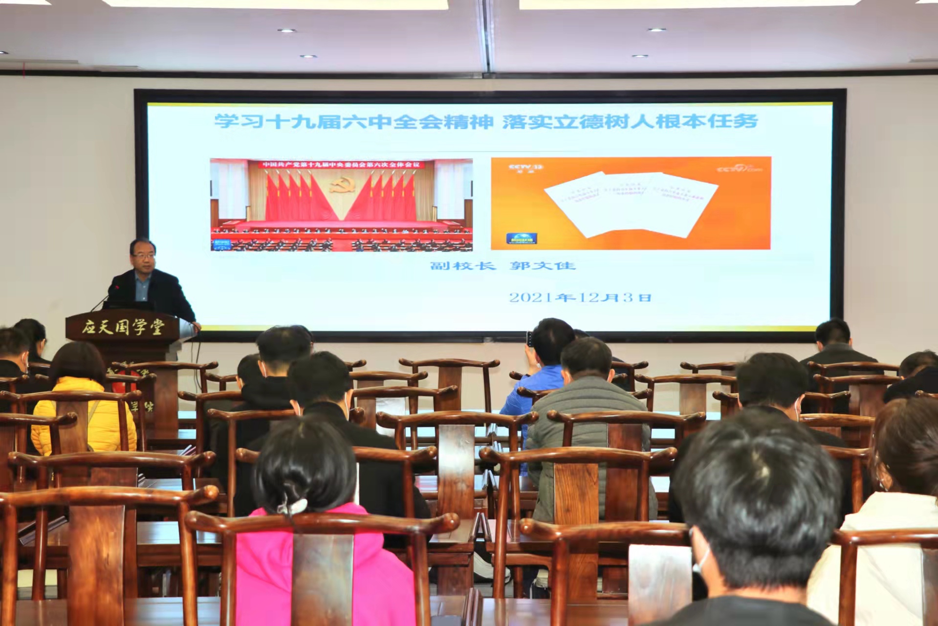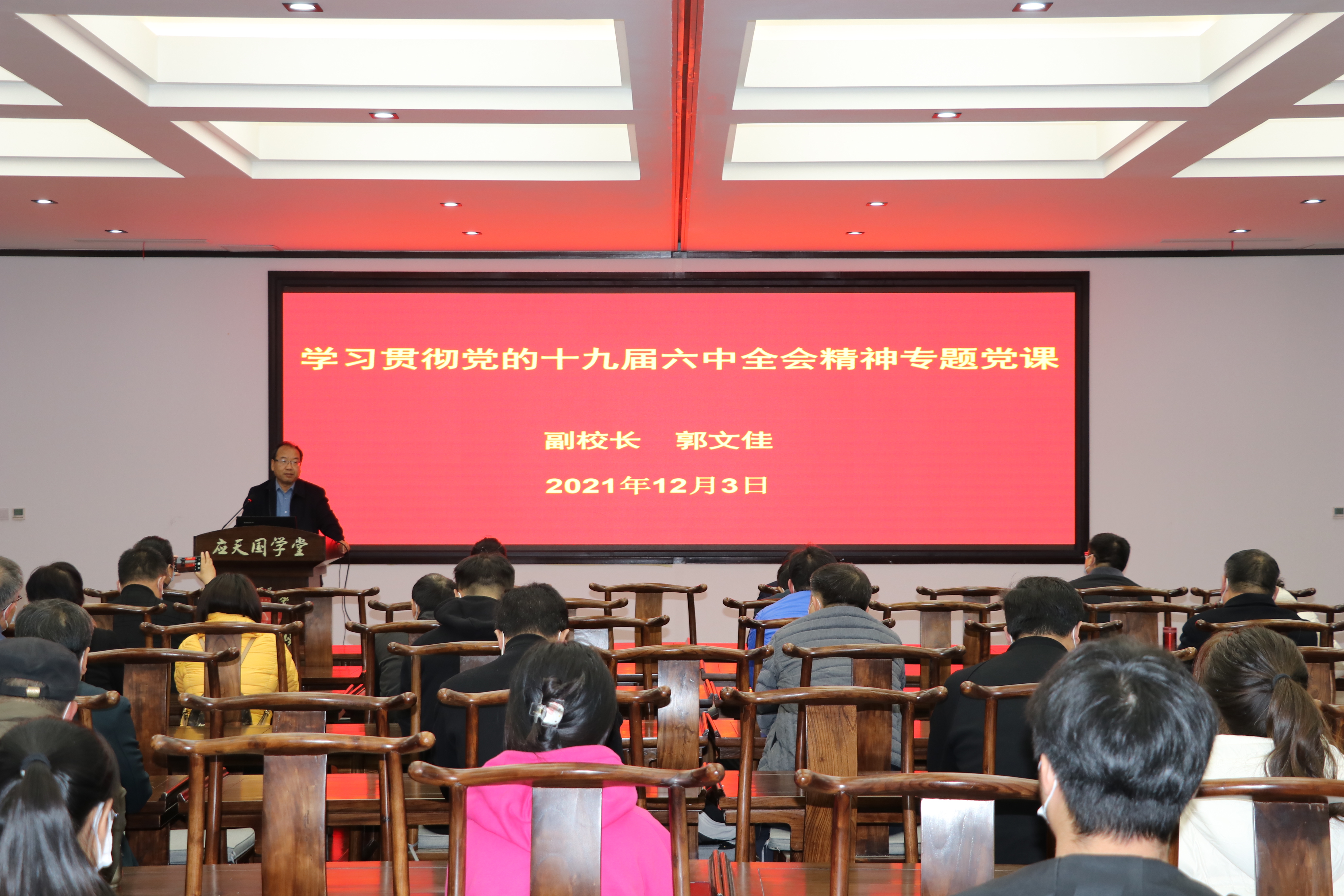 为进一步推进党史学习教育,深入学习贯彻党的十九届六中全会精神,12月3日,副校长郭文佳以“学习十九届六中全会精神,落实立德树人根本任务”为题,为学院师生党员带来了一场精彩生动的党课。