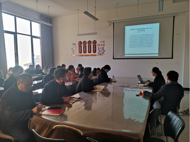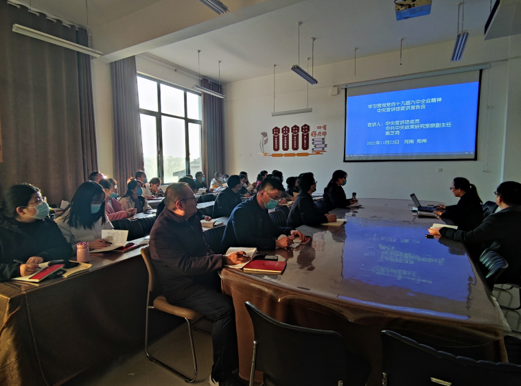 12月3日,学院在汉梁楼203会议室召开政治理论学习会议,集体收看了党的十九届六中全会精神中央宣讲团报告会视频,学习了商丘市委书记李国胜在市委理论学习中心组(扩大)会议上的讲话精神。会议由党委书记蒯秀丽主持,学院全体教师参加。
